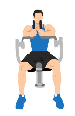 1. 머신의 시트를 조정하여 상완이 어깨보다 살짝 아래 쪽으로 오도록 한다.